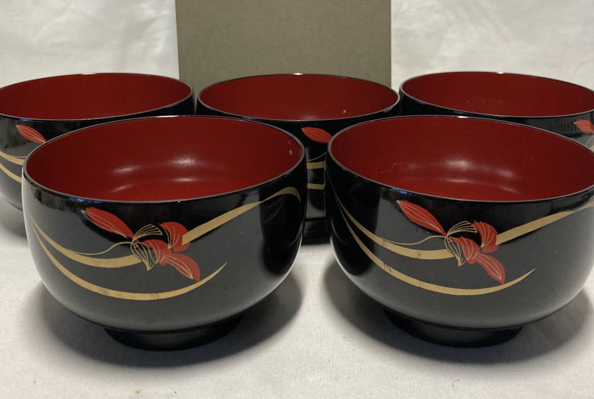 - 会津塗漆器 大和汁椀 黒らん 5客 -1138