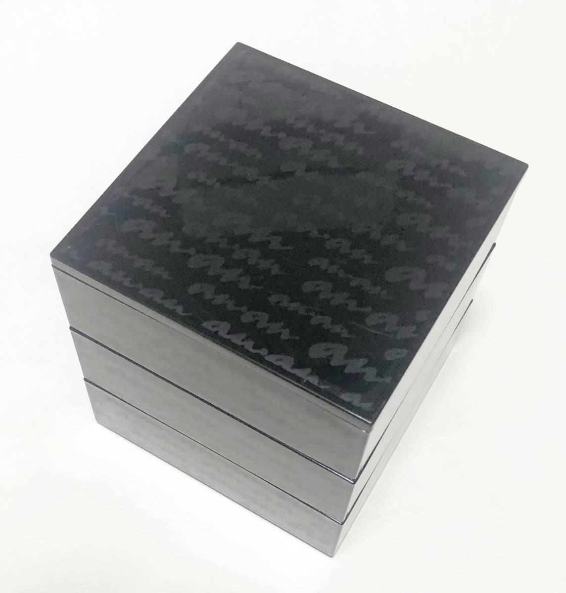 - anan 黒三段ミニ重 ananロゴ入り 樹脂製 小物入れ 置物 重箱