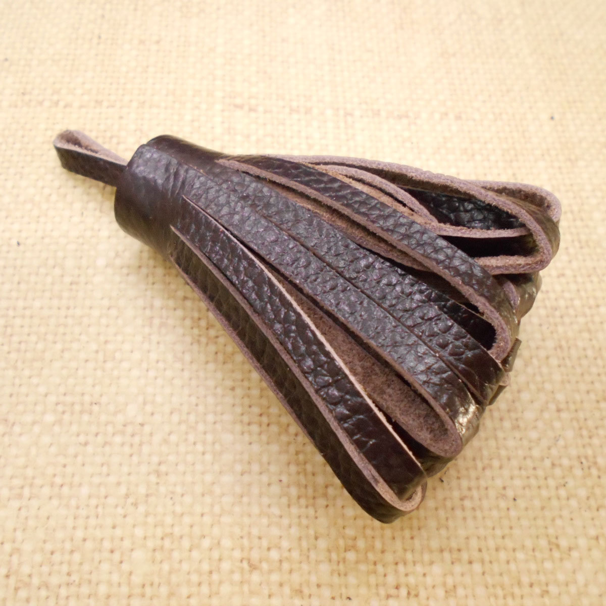 - ふんわり レザーバッグチャーム /こげ茶/レディース キーホルダー タッセル 本革 リアルレザー フリンジ ボンボンネイビー