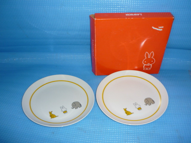 - E★非売品・未使用★2009年ローソン×miffyミッフィー 陶器製プレート皿直径約19cmx2枚