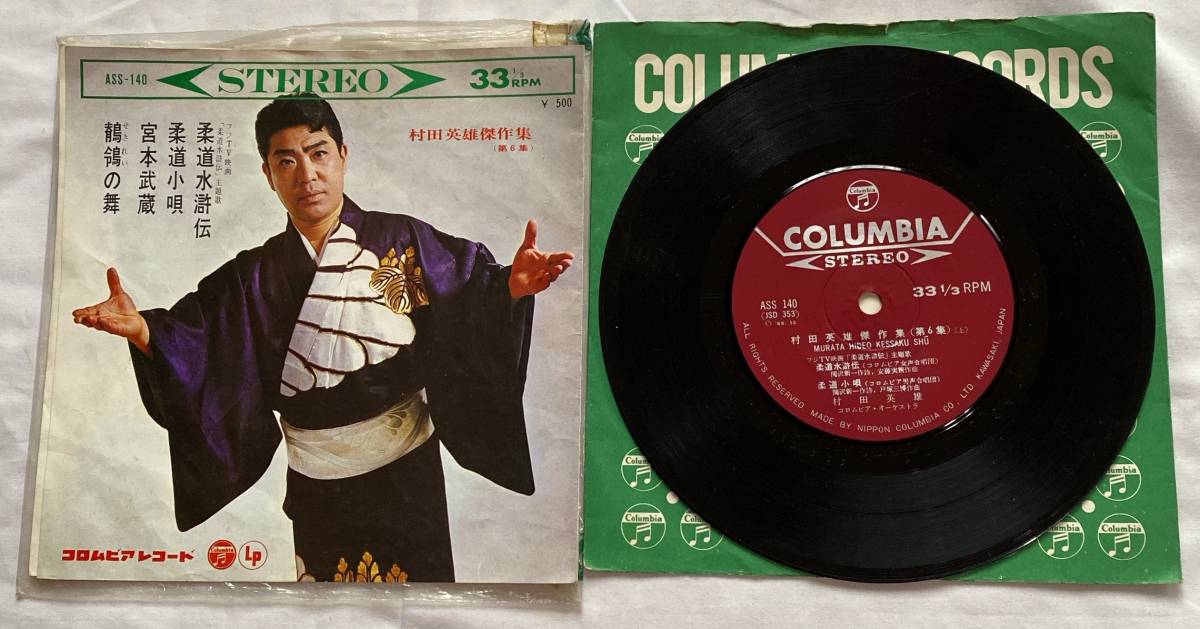 - 村田英夫 柔道水滸伝 柔道小唄 シングルレコード EP盤 古いレア品 コロンビアレコード 日本製****中古品