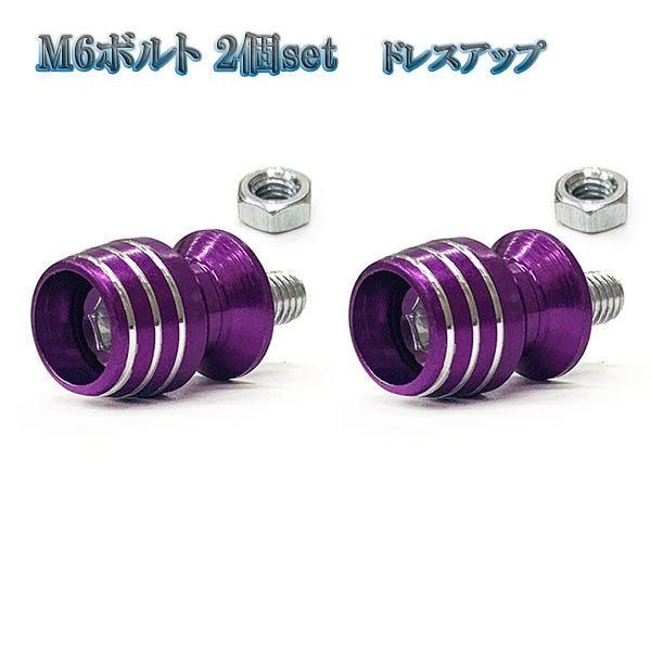 > ナンバー フェンダー ボルト グラス型 盗難防止 M6 ボルト カラーワッシャー 同色 2個set 車 汎用 外装 ドレスアップ パープル
