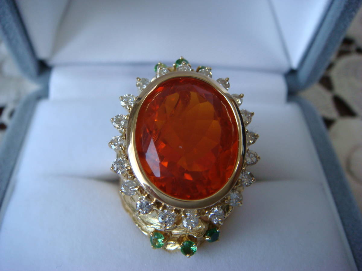 - ◎9カラット 大きなファイヤーオパール ダイヤモンド 豪華リング 鑑別書付◎