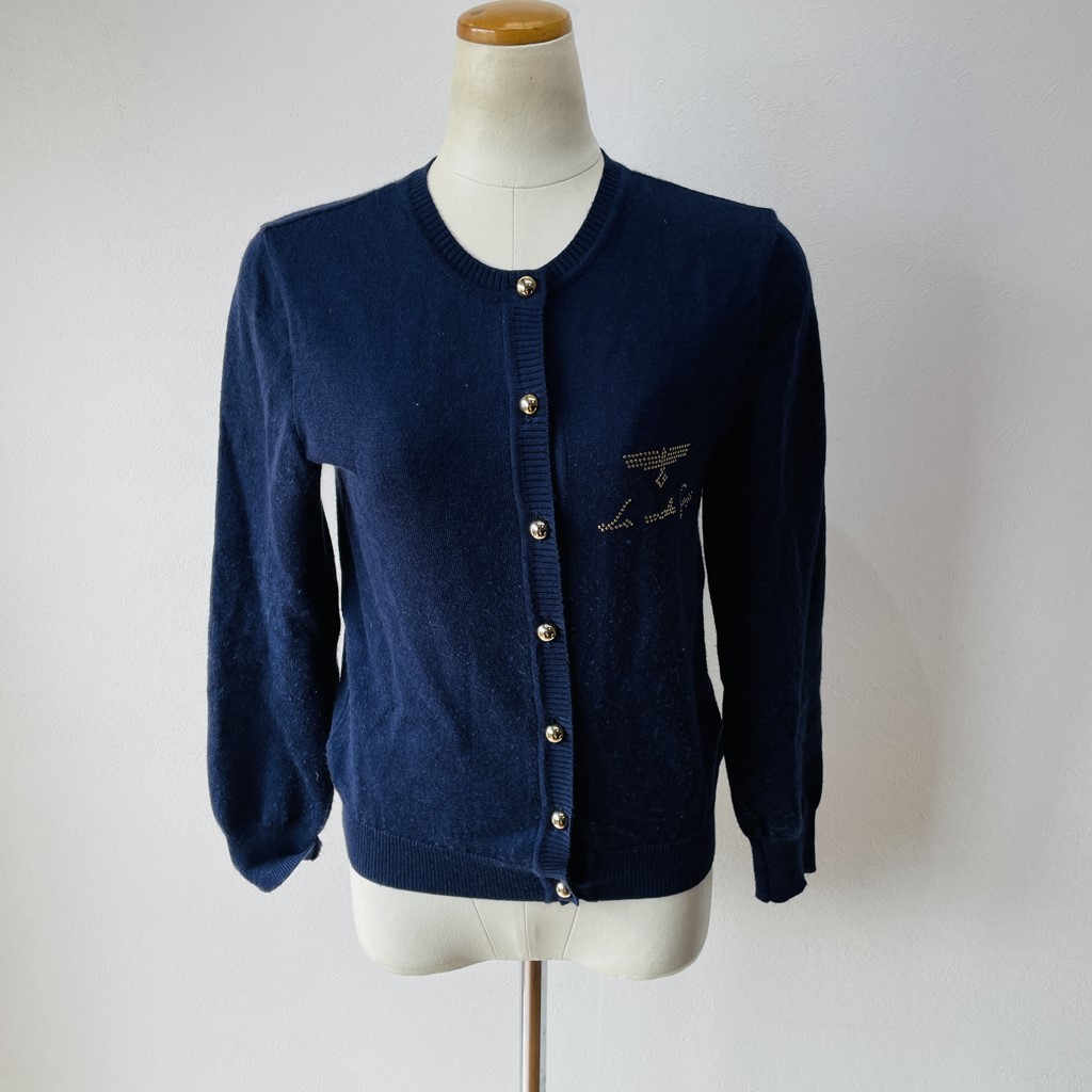 - 【人気】伊太利屋/イタリヤ カーディガン レディース 7A2 紺/ネイビー ウール 6%アンゴラ 金ボタン K2181