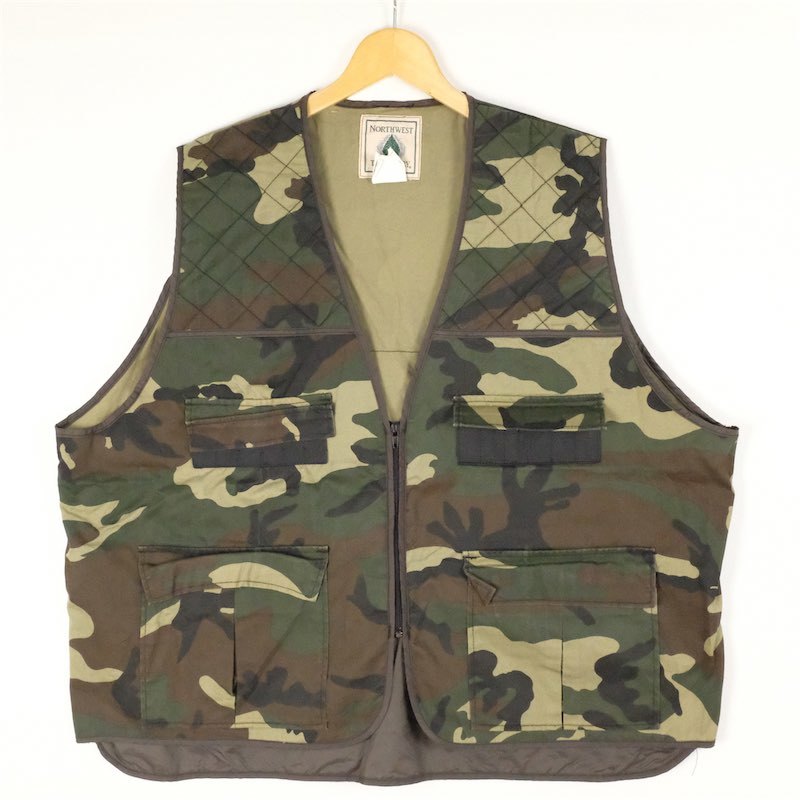 - 古着 大きいサイズ NORTHWEST TERRITORY ウッドランドカモ柄 ハンティングベスト アウトドア レイヤード メンズUS-2XLサイズ tn-1438