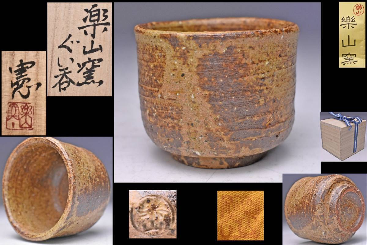 - 長岡憲夫 ( 長岡空郷 ) ★ 楽山窯 ぐい呑 ★ 共箱 共布 栞 ★ 伊羅保 タイプ ★ 十二代 長岡住右衛門 ★父:長岡空権 ★ 楽山焼 ★