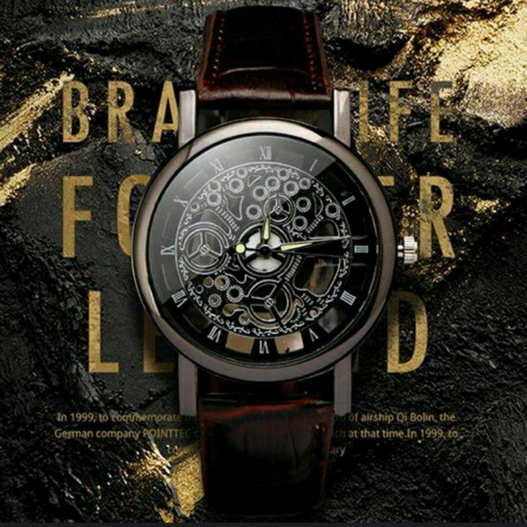 - 新品 激渋 腕時計 スケルトン シルバー 茶色 9