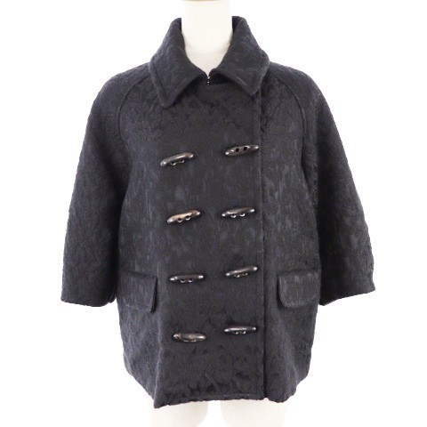 > カオン Kaon ジャケット ショート ステンカラー ダブルボタン バルーンスリーブ レース トグルボタン ウール M 黒 レディース