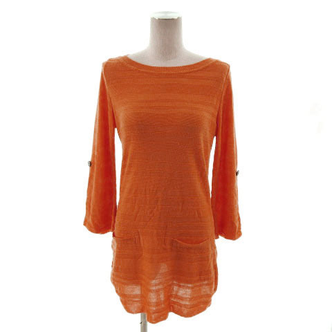 - アンタイトル UNTITLED ニット 長袖 ロング丈 袖ロールアップ 日本製 ボーダー オレンジ 2 レディース