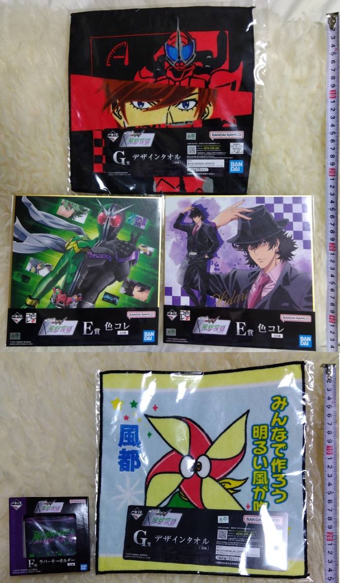 - ●一番くじ 仮面ライダーW×風都探偵 5点セット=E賞 色コレ 色紙2+F賞デザインタオル2+G賞ラバーキーホルダー1@3469-1