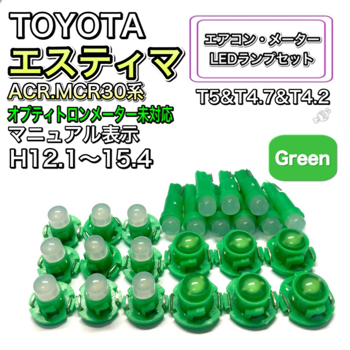 > エスティマ ACR.MCR30系 マイナー前 マニュアル表示 打ち換え LED エアコン・メーターランプ T4.7 T5 T4.2T3 ウェッジ トヨタ グリーン