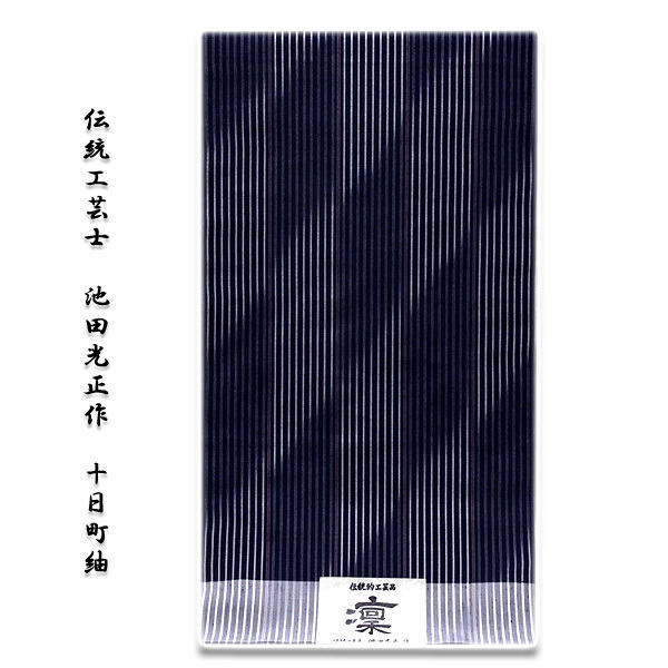 > [和楽屋] ■伝統工芸士「池田光正作」 伝統的工芸品 凛 先染め 縞模様 反物 正絹 十日町 紬■