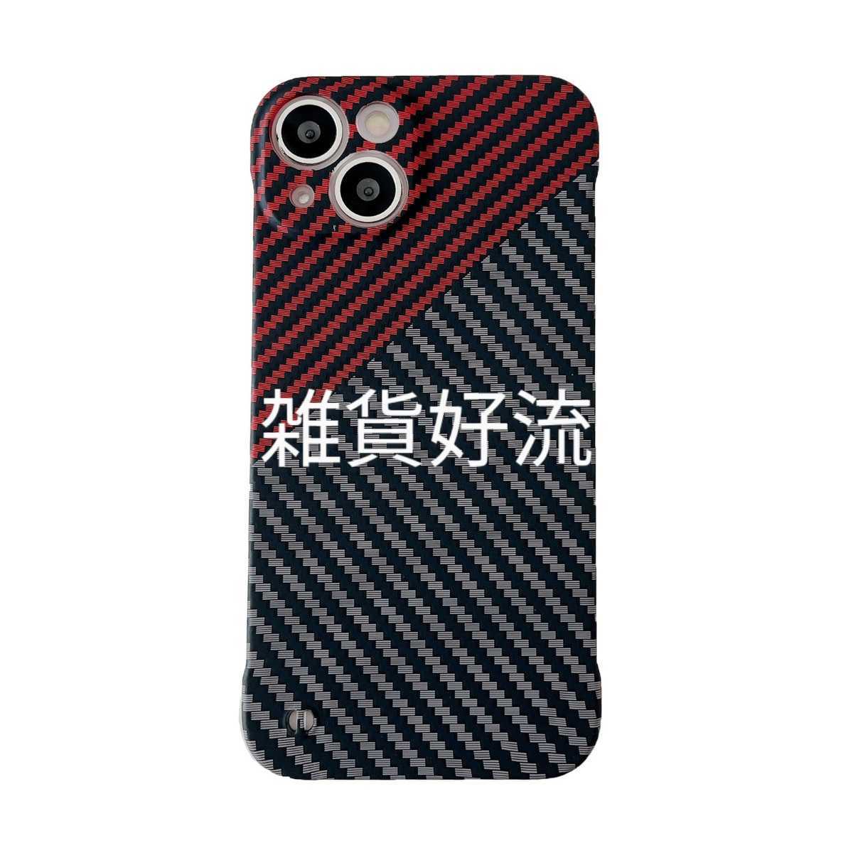 > iPhone14 用 テクスチャーケース カーボンファイバー ブラックレッド