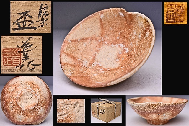 > 古谷道生 ★ 信楽 ぐい呑 ★ 共箱 共布 ★ 景色豊かな逸品 ★ 早世の名工による希少作 ★ 山杯 盃 酒器 ★