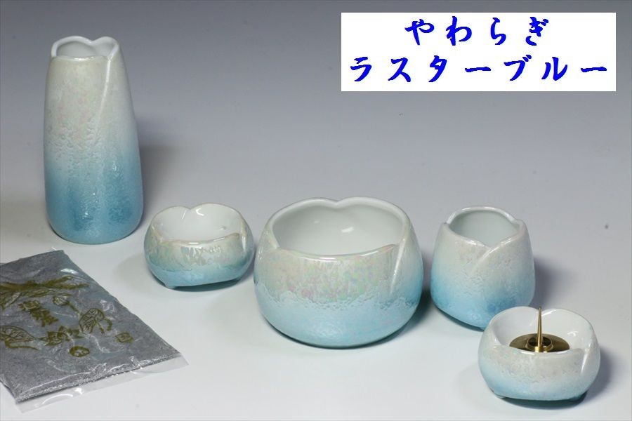 - 国産 仏具 仏具セット ■限定■陶器 5具足セット【やわらぎ】モダン仏具■ ラスターブルー お盆 お墓参り 供養