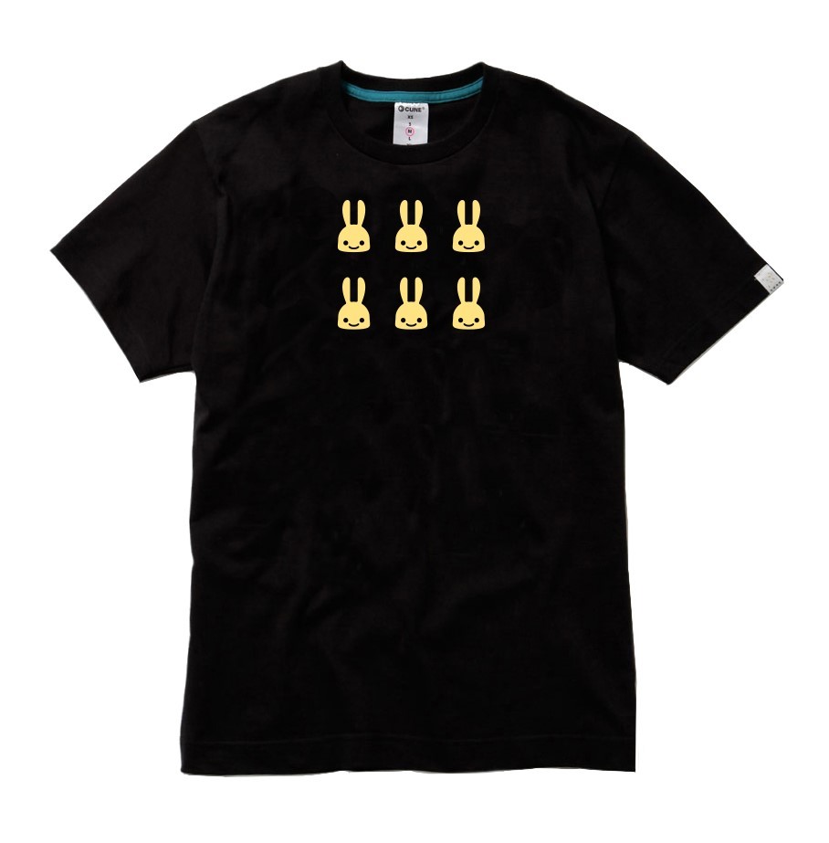> 2019 秒殺完売品 限定品 CUNE キューン『8/6Tシャツ』半袖 黒+黄ウサギ 前後プリント L・身幅約53cm※未試着品/未使用品/商品タグ付き/稀少