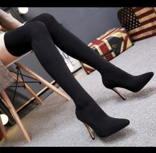 - cjx684★着回し新作 上質ニーハイブーツ ロングブーツ レディース ストレッチ ハイヒール ピンヒール 厚底 美脚 黒 22.5cm~25cm