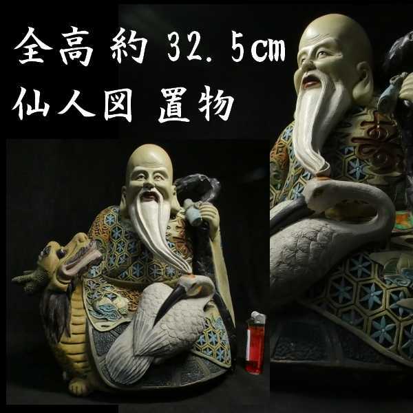 - b1110 大きな置物 全高 32.5cm 細密細工 仙人と龍に鶴図 置物 中国美術 検:仏像 置物