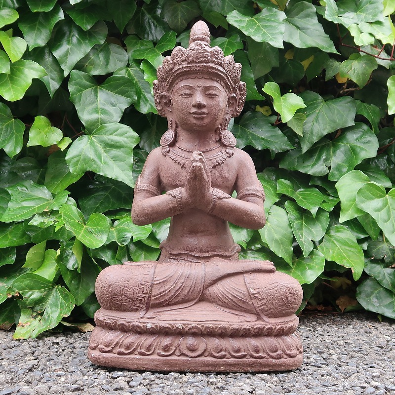 > デウィ タラ 石像 合掌 45cm コンクリート アンティーク調 石彫り彫刻 置物 庭 ストーンオブジェ YSA-250667