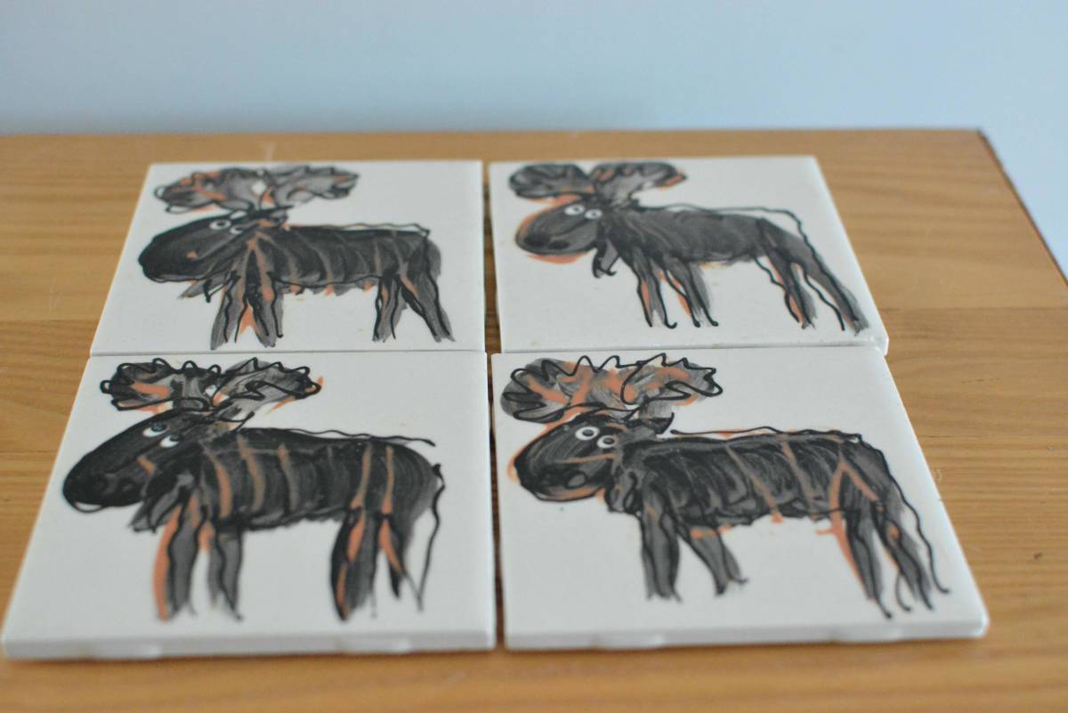 - 送料込 北米セラミックメーカー ARTABLES セラミック ソーサー/鍋敷 ムース柄 北欧デザイン