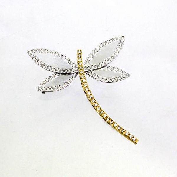 - ◎中古美品◎18金YG,WG ダイヤ 1.36ct トンボデザイン ブローチ兼ペンダント