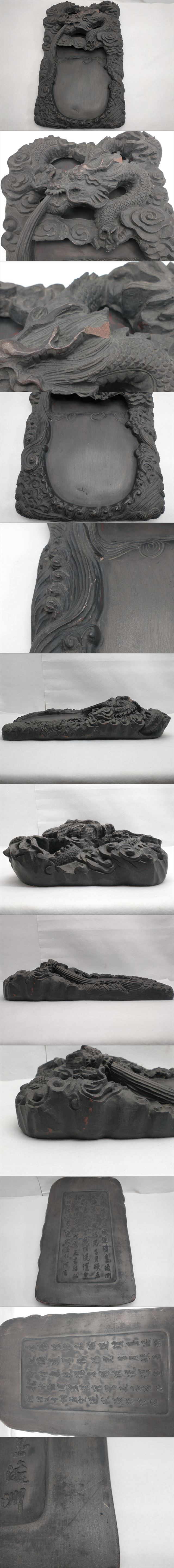 - 【刻印入り】大型 雲龍硯 中国硯 古美術 書道具 幅22cm 奥行37cm 高さ8cm (22_50513_9)
