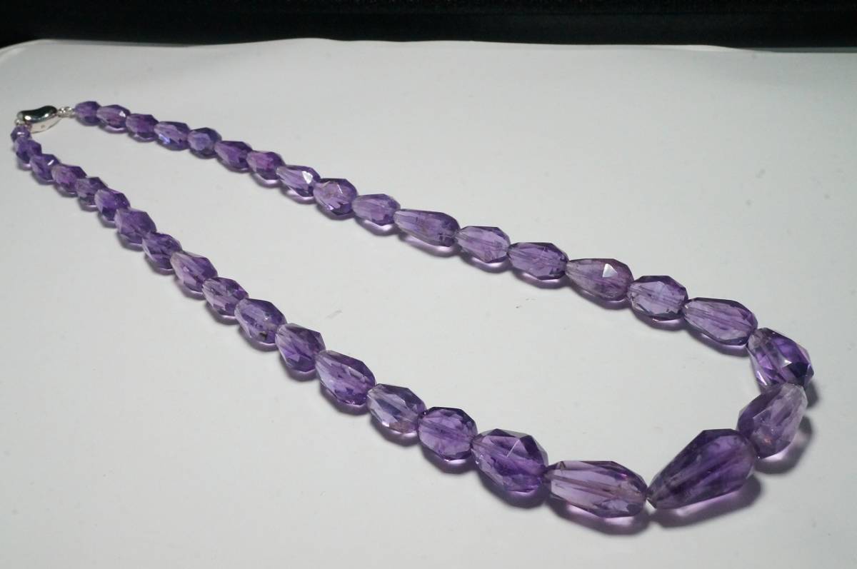 > 即決特別価格!カットネックレス!1本しかございません!甲府の一級研磨士が施した匠の逸品!天然アメジスト(紫水晶)ネックレス195ct