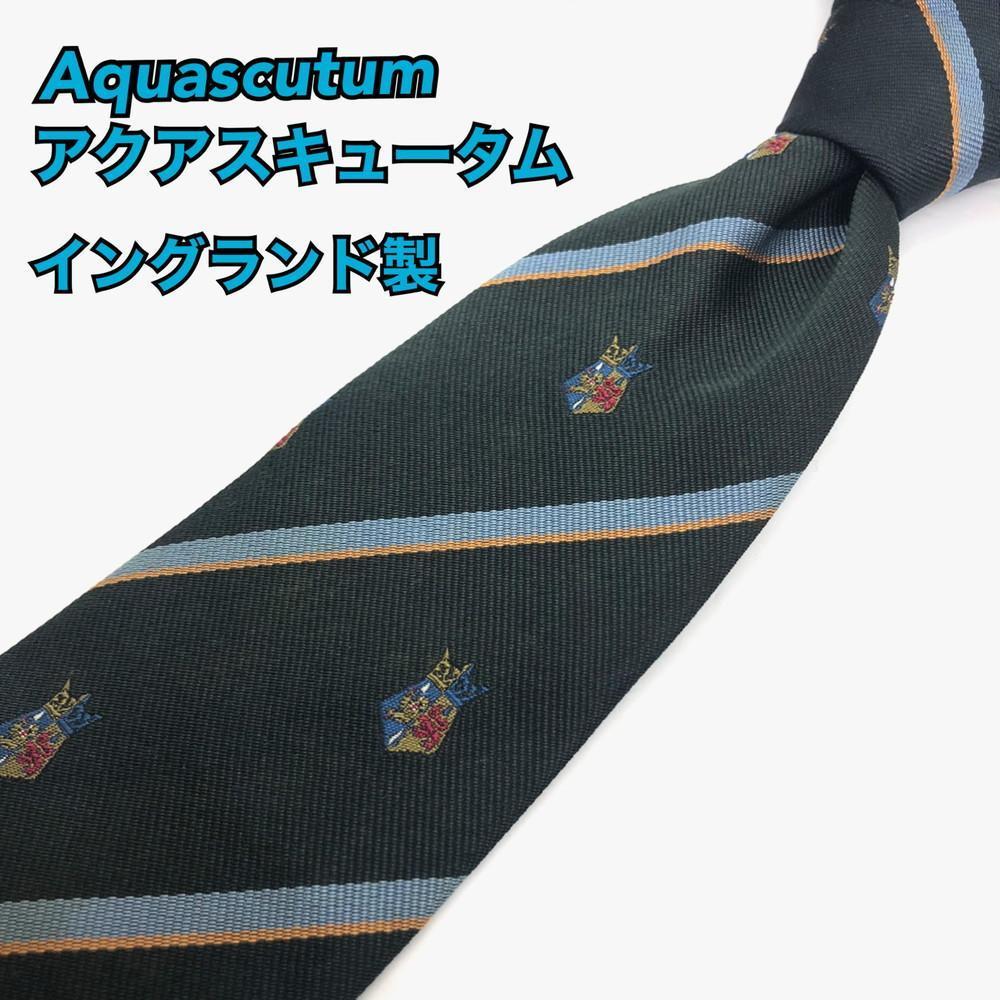 - 【特価】アクアスキュータム ネクタイ 高級シルク イタリア製 ストライプ 紺