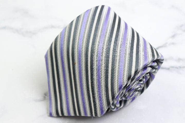- ポールスチュアート ストライプ柄 ブランド ネクタイ メンズ グレー パープル