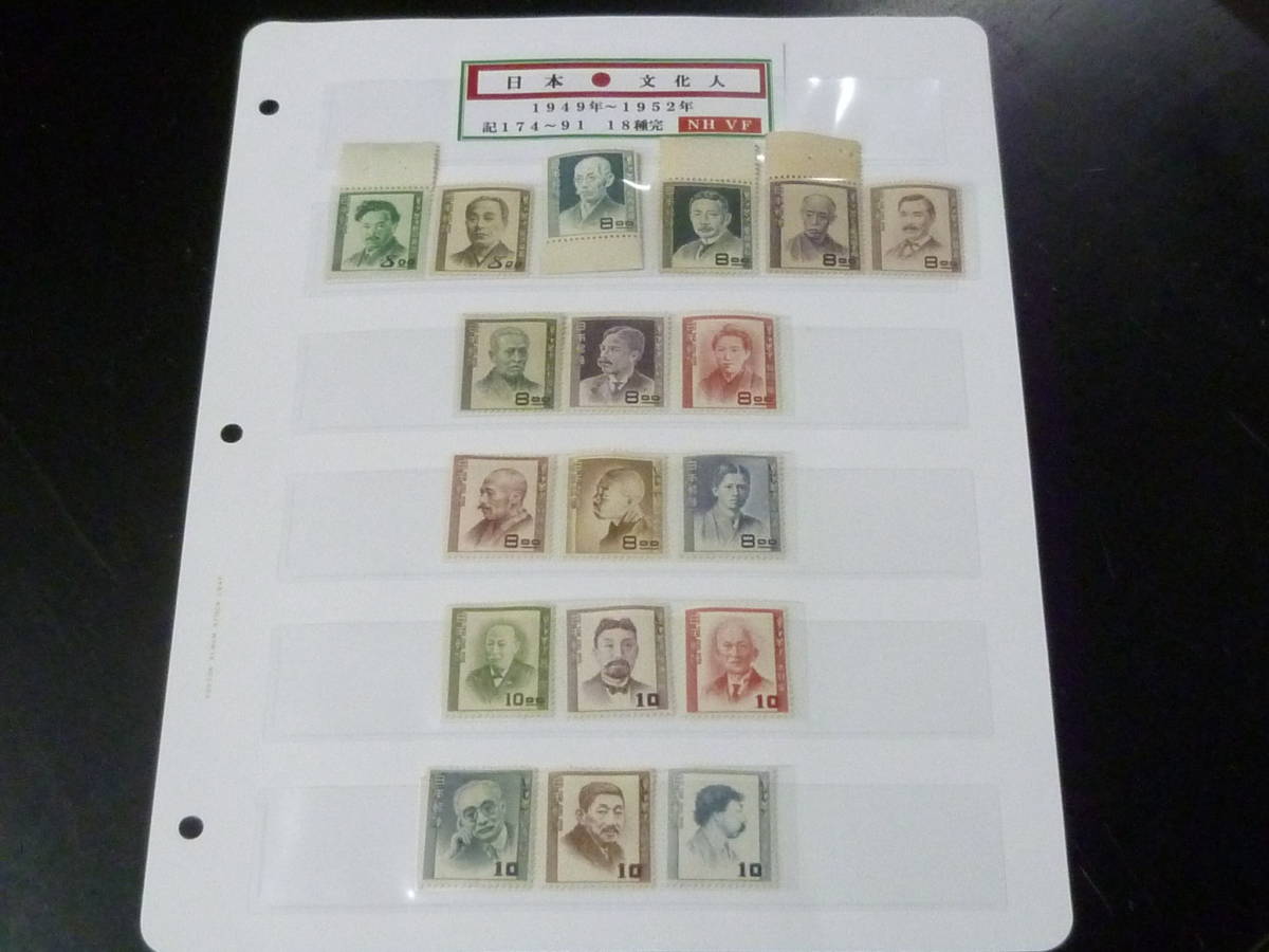 - 23 A 日本切手 1949-52年 文化人 記174-91 18種完 未使用NH・VF 【型価 38,500円】