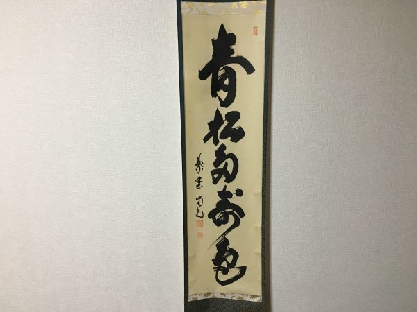 - 【雪華】☆春 お祝い☆ 大徳寺 龍源院住職 細合 喝堂 一行 青松多寿色 掛軸 共箱 掛軸 茶掛 茶道具 【 表 裏 千家 而妙斎 鵬雲斎 】