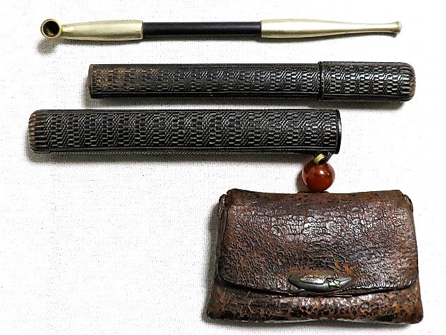 - 時代提物 前金具 彫金細工 煙管 煙管筒 彫刻細工 時代 その1