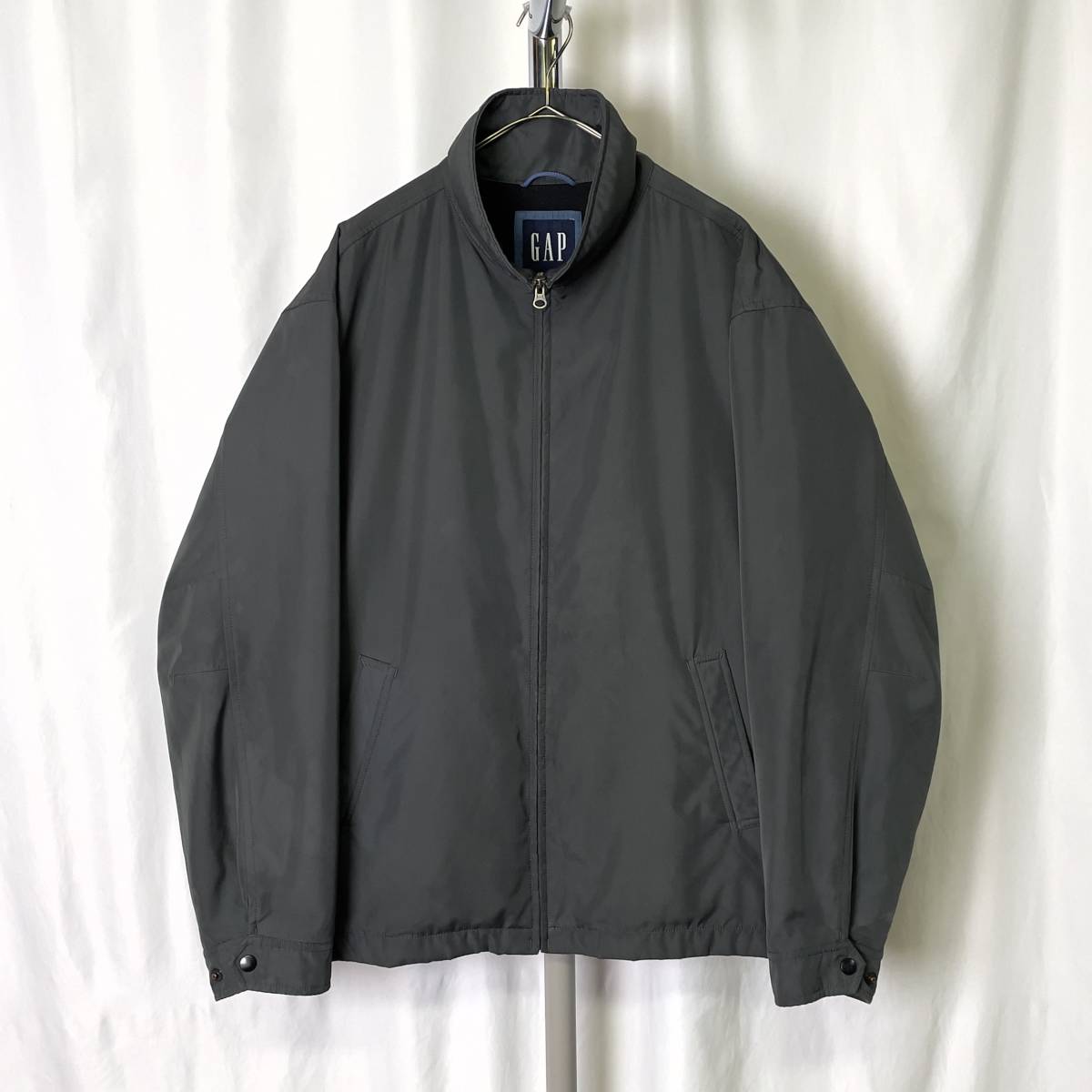 - 00s 香港製 GAP ミニマル ジャケット L ビッグサイズ グレー フリース ハイネック オールド ギャップ 80s 90s 古着 ビンテージ