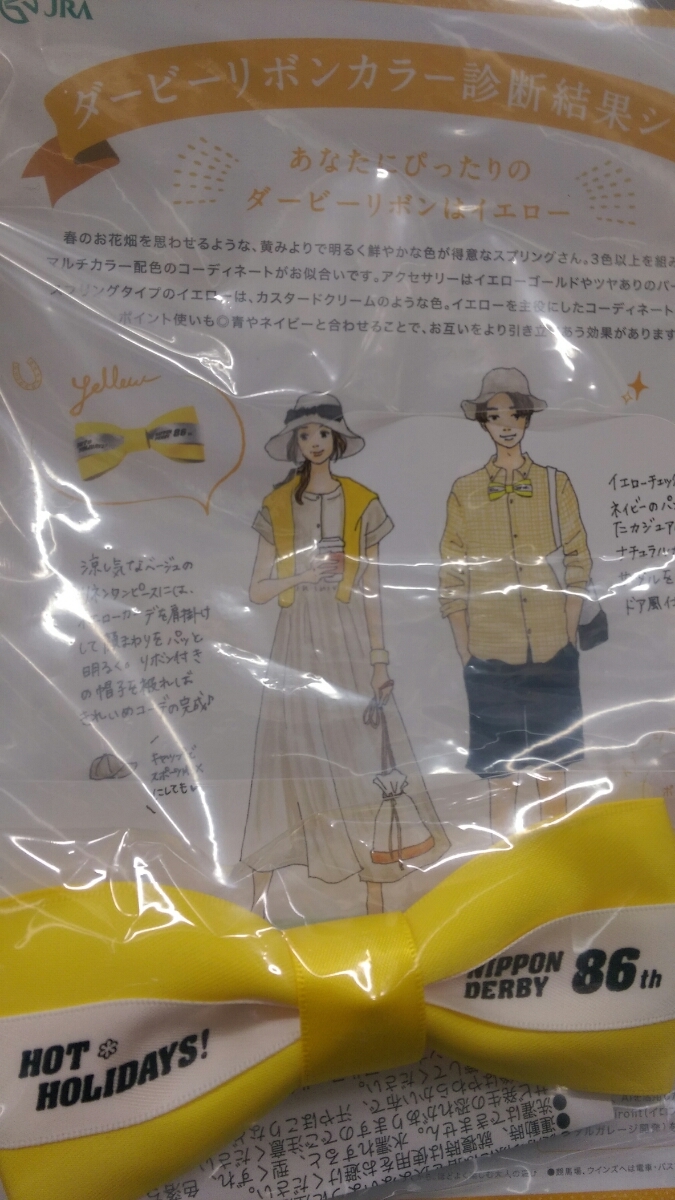 - JRA 第86回 2019年 日本ダービー ダービーリボン 黄色 イエロー 5枠 東京競競馬 イベント配布品