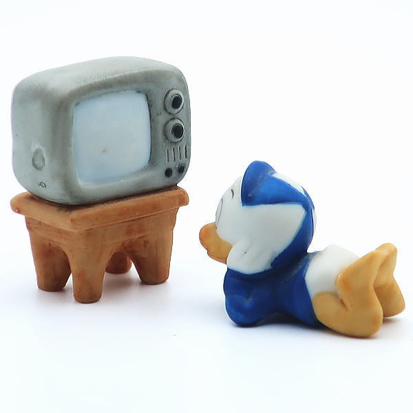 - ディズニー デューイとテレビ ビスク・フィギュア グロリア社 1980年代 陶器製 ドナルドの甥