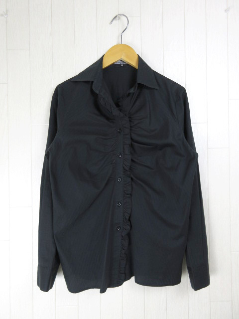 - エンツォガーラ Enzo gala シャツ ブラウス ストライプ フリル コットン 長袖 ブラック 40 レディース