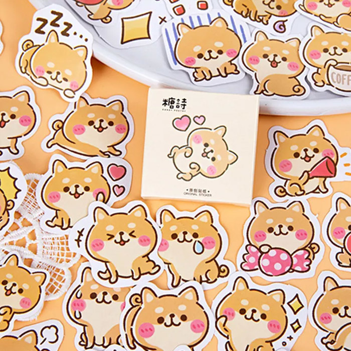 - 45枚 シール 柴犬 犬 シバ イラスト デコステッカー アンティーク調 コラージュ レトロ 1135