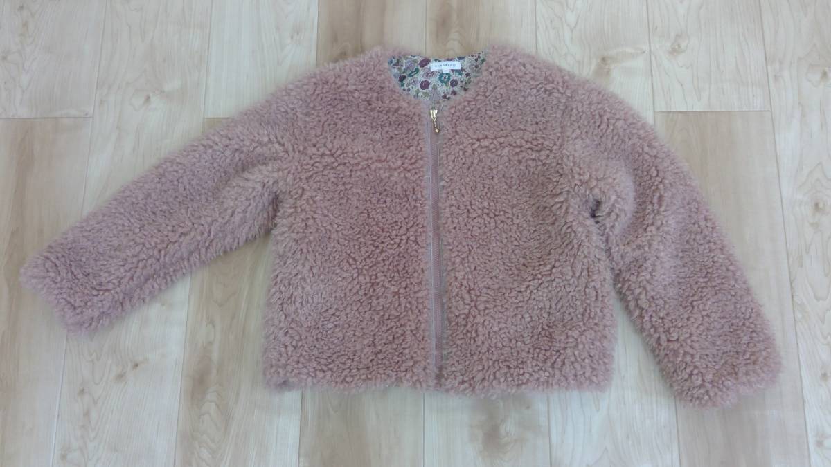 - さくら色 ふわふわ 3can 4on もこもこジャケット150★グレーピンク★襟なしフードも出せる