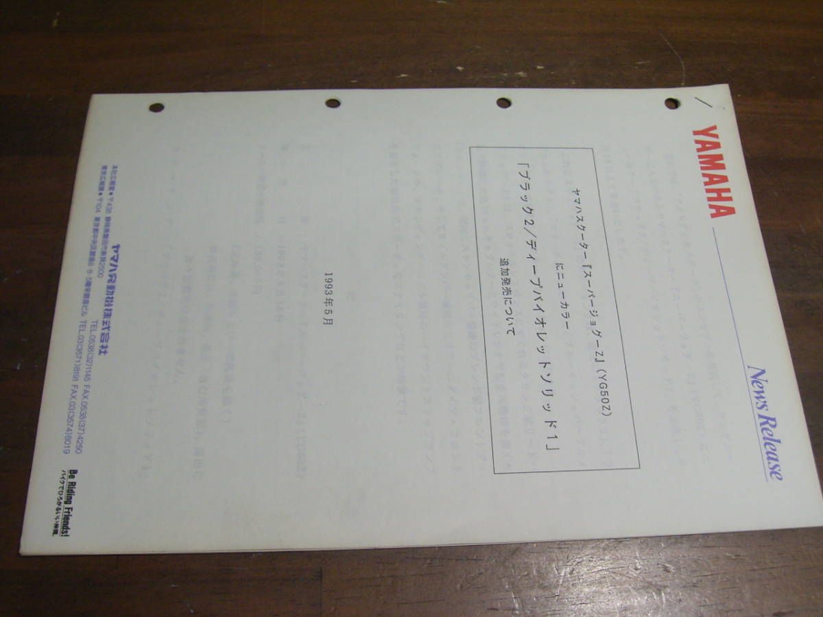 - 1993 スーパーJOG Z ニュースリリース 原本