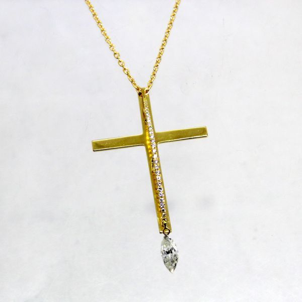 > ◎中古美品◎18金 マーキスダイヤ 0.77ct メレダイヤ 0.18ct クロスペンダント付ネックレス