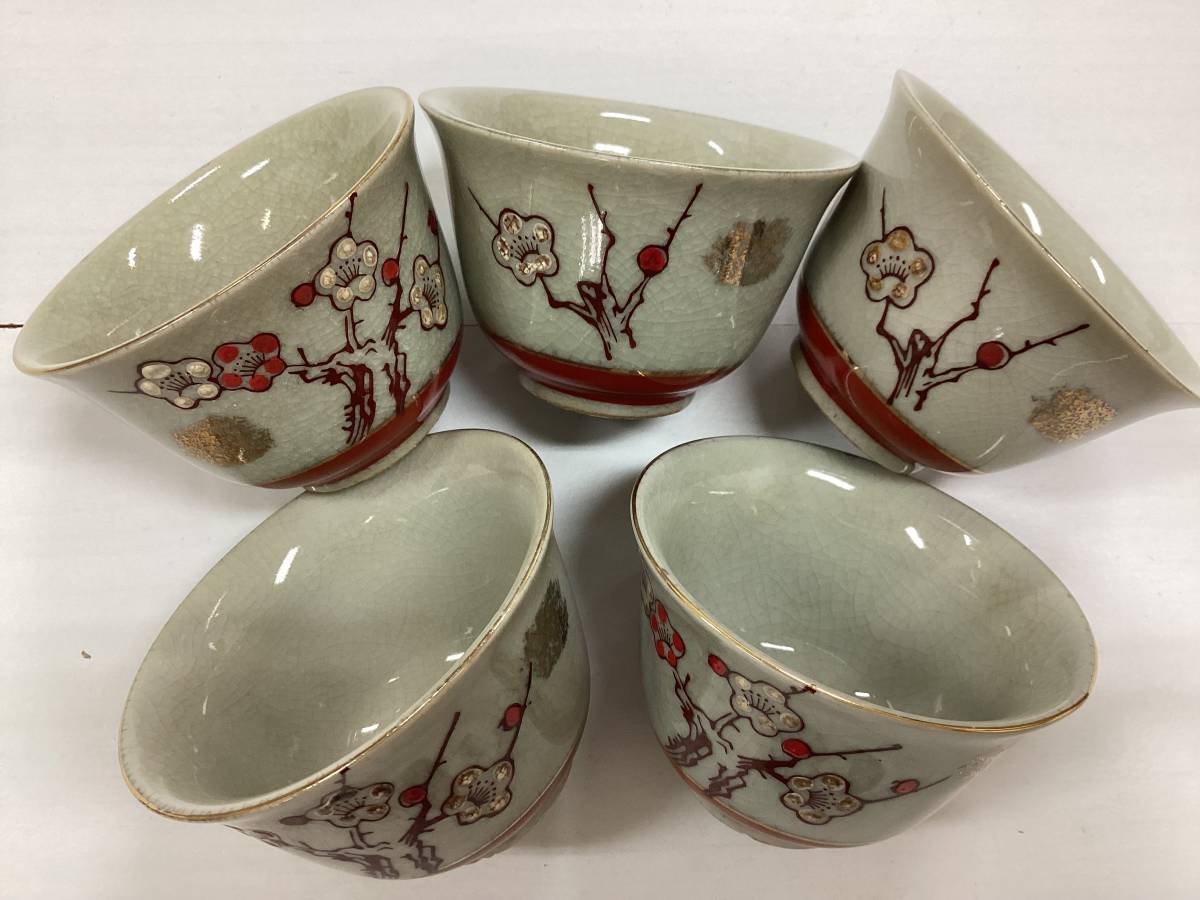 - 湯呑み ゆのみ 九谷焼 九谷 梅 花柄 5客セット 茶器 煎茶道具 K256