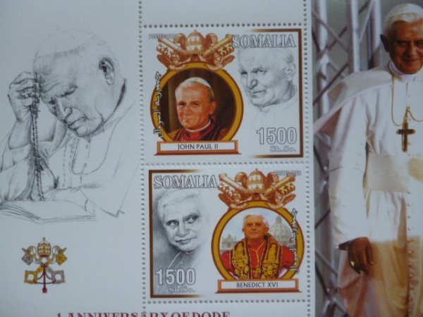 - ソマリア切手『ローマ教皇』(ヨハネ・パウロ2世/ベネディクト16世) 2枚シート 未使用