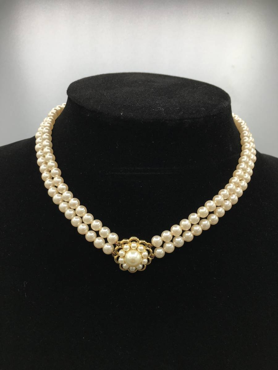 > 国内発送 ヴィンテージ 箱付き ゴールドメッキ イミテーションパール ネックレス コスチュームジュエリー (40-60-546)