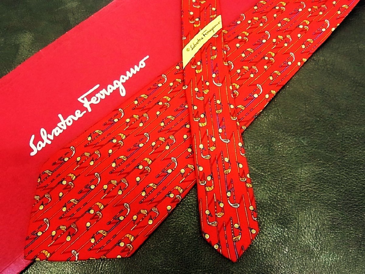 - ♪今週の特売980円~♪1488W♪状態並品【Ferragamo】フェラガモ【ゴルフ 柄】ネクタイ♪