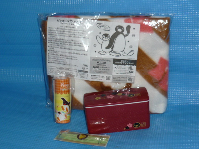 - C★未使用・非売品★ピングーpingu×ヤマダ電機 ブランケットとミスド×ピングーpingu角がたお弁当箱他3点