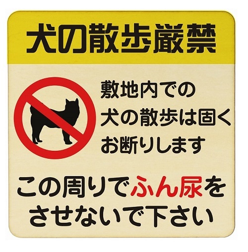 > 犬の散歩厳禁 注意 警告 案内 禁止 施設 ピクトサイン ドアサイン 木製 プレート 正方形 14x14cm インテリア 商用 店舗 館内 送料無料