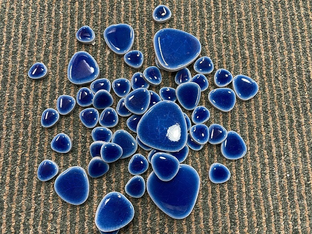 - 美濃焼タイル 玉石バラ きれいな貫入ブルー 大小4サイズ 200g入り T-14