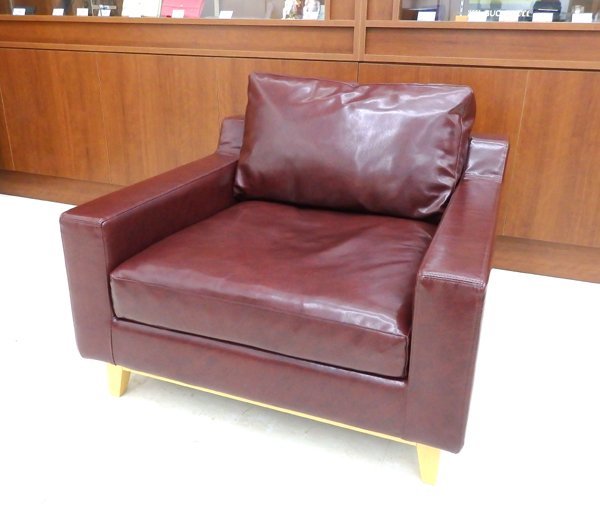 - 美品 高級ソファ HUKLA/フクラ モデナ 1Pソファ T572 ビニールレザー ローバック ポリフィ使用 日本製 応接 施設 什器