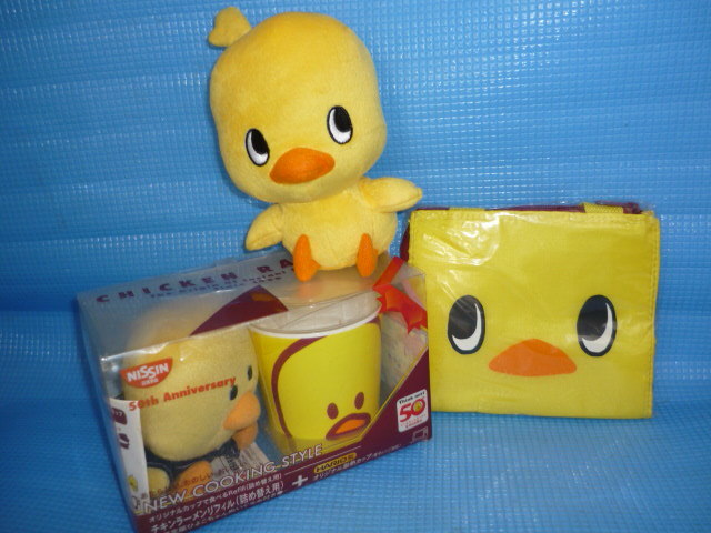 - C★未使用★チキンラーメン リフィル(詰め替え用)耐熱カップと50th限定ひよこちゃんぬいぐるみ他4点