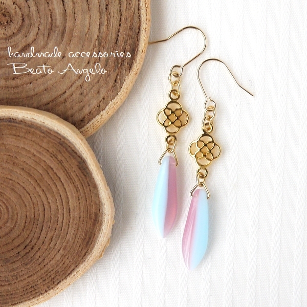 - ◆◆+angelo+チェコダガーと透かしフラワーのピアス(p-198)オペークブルー&ローズオパール G